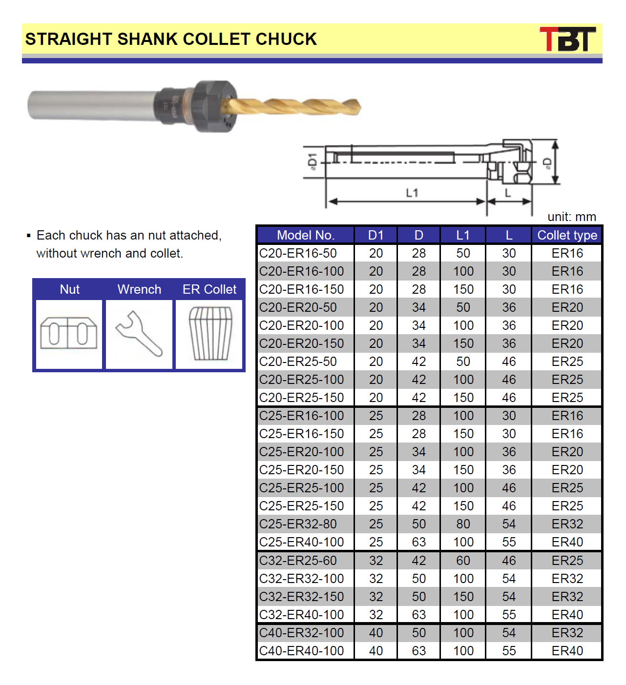 Straight shank collet chuck